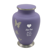 The Aero Butterfly Adult Cremation Urn offers a lasting way to honor a loved one’s memory. Crafted from durable solid brass with a matte lavender finish, it features nickel-plated butterflies, a timeless symbol of transformation, peace, and eternal life. With a 200 cubic inch capacity, this adult cremation urn securely holds the ashes of one adult, following U.S. cremation standards. Each urn is hand-finished, ensuring that no two pieces are exactly alike, and the threaded lid provides lasting protection. A respected option among lavender urns for ashes, it offers families a meaningful balance of durability, symbolism, and unique character.