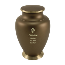 The Aero Wheat Adult Cremation Urn is a handcrafted tribute made from solid brass, finished in a warm matte bronze tone with hand-engraved wheat sheaves. The wheat motif is a timeless symbol of abundance, nourishment, and eternal peace, making this urn a fitting memorial for a loved one. With a 200 cubic inch capacity, it is designed to hold the full remains of an adult. The secure threaded lid ensures ashes are safely contained, while optional personalization in brass engraving adds a meaningful touch.