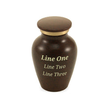 The Classic Granite Brown Gold Accent Ring Keepsake Urn is a brass keepsake urn finished in a granite-style brown tone with a subtle gold accent ring beneath the lid. This design blends warmth and dignity, making it ideal for families wishing to keep a symbolic portion of ashes. With a capacity of up to 5 cubic inches, it is perfect for sharing among family members or for display in a special place. Ashes are protected in a bag with tie, secured by an easy-close threaded lid.