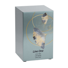 The Ginkgo Leaf Pewter Companion Urn – Right Side is a beautifully crafted adult cremation urn made from brushed stainless steel with a refined pewter finish. Adorned with hand-painted ginkgo leaf artwork in gold and blue accents, this urn symbolizes resilience, harmony, and eternal life. Designed with a full 200 cubic inch capacity, it securely holds the ashes of one adult and is sealed with a bottom panel fastened by four screws. This urn may be displayed alone or paired with the Ginkgo Leaf Pewter Companion Urn - Left Side to complete a companion urn set. Includes a protective bag with tie closure for dignity and care.