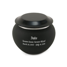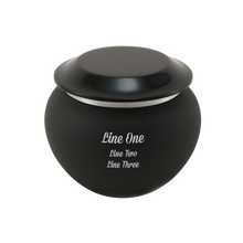 The Aluminum Onyx Medium Cremation Urn is a modern, understated memorial crafted from durable aluminum with a smooth onyx matte finish and polished lid accent. With a capacity of 40 cubic inches. A secure threaded lid closure protects the ashes, and optional personalization with pewter-color engraving offers a meaningful tribute.