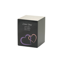 The Black Marble Pink Heart Inlay Large Pet Cremation Urn is handcrafted from genuine black marble with a polished surface and a pink heart inlay that represents eternal love and devotion. With a capacity of 75 cubic inches, this urn provides a dignified resting place for a beloved companion. A secure sliding bottom panel (1 screw) ensures reliable closure, while optional silver engraving offers the opportunity to personalize with names, dates, or a heartfelt message. Natural veining ensures each urn is unique, creating a one-of-a-kind memorial.