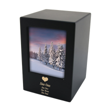 Elegant and customizable, the Black Photo Frame Extra Large Pet Cremation Urn offers a meaningful way to keep your beloved companion close. Made from durable MDF wood with a smooth black finish, this urn features a sliding photo panel to display your favorite memory of your pet. With a capacity of 200 cubic inches, it is suitable for pets up to 200 lbs. The secure bottom panel ensures safe closure, and personalization options allow for engraving a heartfelt tribute directly on the urn.