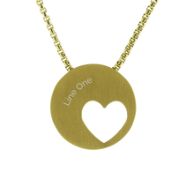 Bronze Off-Centered Heart Pendant Cremation Jewelry is crafted from stainless steel with a brushed bronze finish. The modern heart cutout symbolizes enduring love and holds a nominal keepsake amount of ashes, secured by a threaded back closure. A 21" chain, fill kit, and presentation box are included.