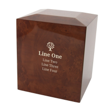 The Geometric Amber with Divider Companion Urn is crafted from durable MDF with an amber wood-grain finish. Designed to honor two individuals, it includes an internal divider, allowing ashes to be placed together or separately. With a combined capacity of 400 cubic inches, this companion urn is a timeless tribute, symbolizing unity and eternal togetherness. Families may also choose personalized engraving, making this memorial truly unique and meaningful.