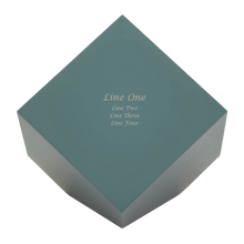 The Geometric Bamboo Matte Sage Adult Cremation Urn blends natural bamboo with a soft matte sage finish, creating a modern yet serene tribute. Its cube-inspired geometric design reflects strength and balance, while bamboo symbolizes resilience and the continuity of life. With a capacity of 210 cubic inches, it is suitable for an adult weighing up to 210 pounds. A slide-base closure secures the urn, and families may select personalized engraving for a distinctive memorial.