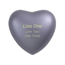 The Matte Periwinkle Brass Heart Keepsake Urn is a beautifully handcrafted memorial that embodies serenity and love. Made from solid brass with a soft matte periwinkle finish, it offers a peaceful and timeless way to honor a loved one’s memory. With a capacity of 3 cubic inches, it is perfect for holding a small portion of ashes. The threaded back closure ensures safe containment, while personalization in brass engraving allows families to add a name, date, or short message for a truly personal tribute. A velvet presentation box is included for elegant safekeeping and display.