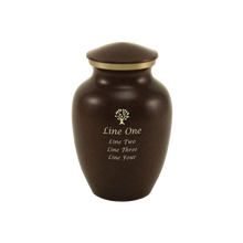 The Speckled Brown Brass Medium Pet Urn with Accent Ring is a handcrafted memorial designed to preserve the memory of a beloved companion. Made from solid brass, it features a rich speckled brown finish with a polished brass accent ring at the lid. With a 40 cubic inch capacity, this urn offers secure storage, protected by a threaded lid closure. Families may personalize the urn with brass engraving, creating a meaningful tribute that combines strength, warmth, and elegance.